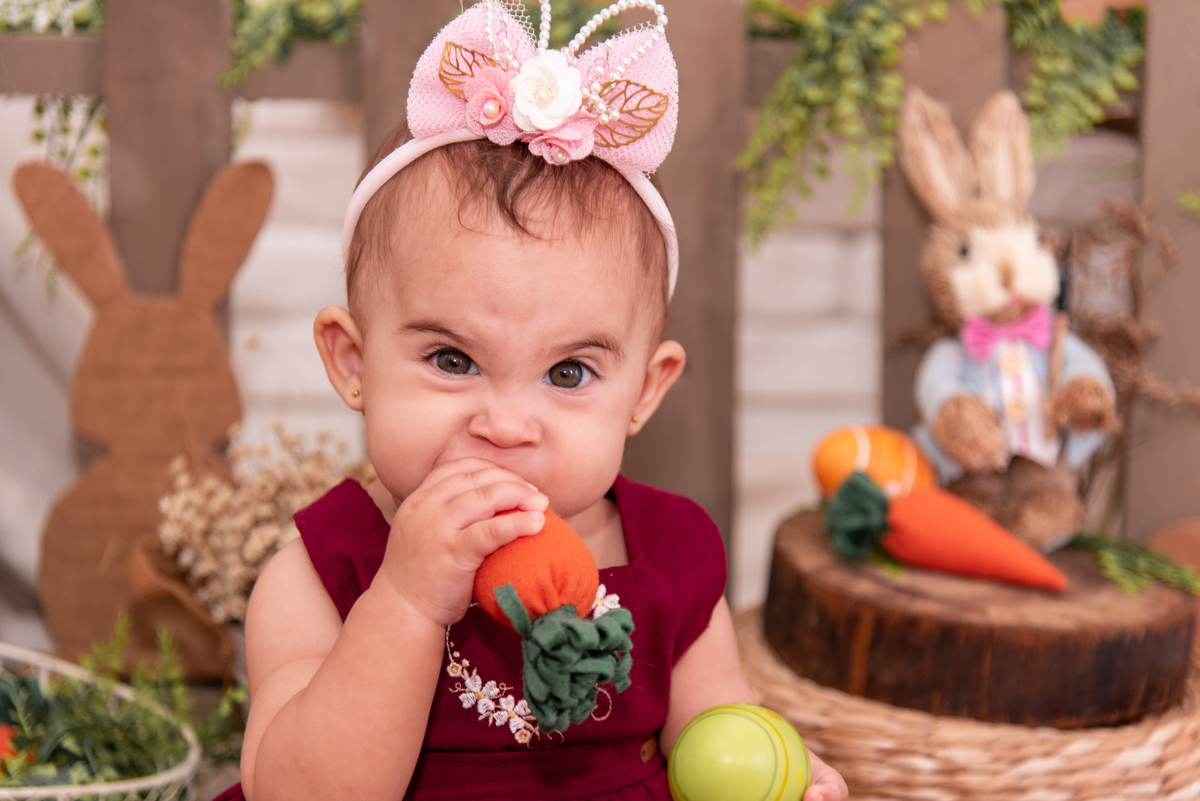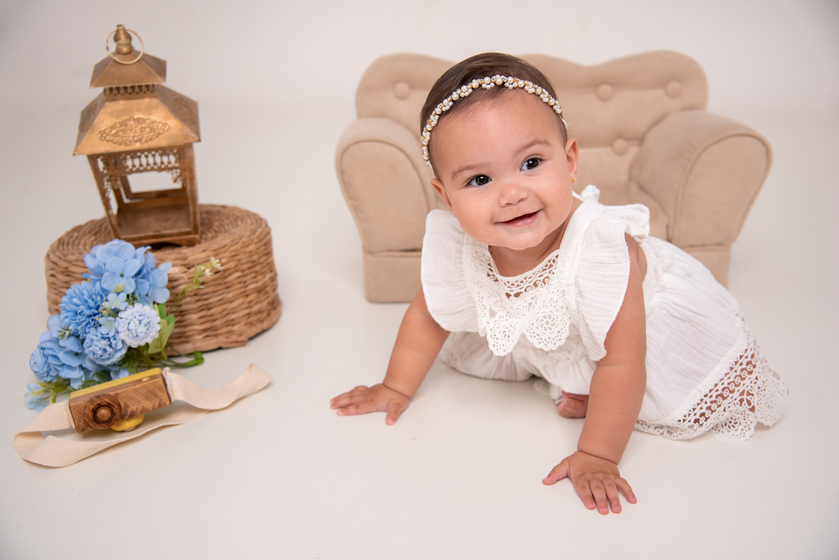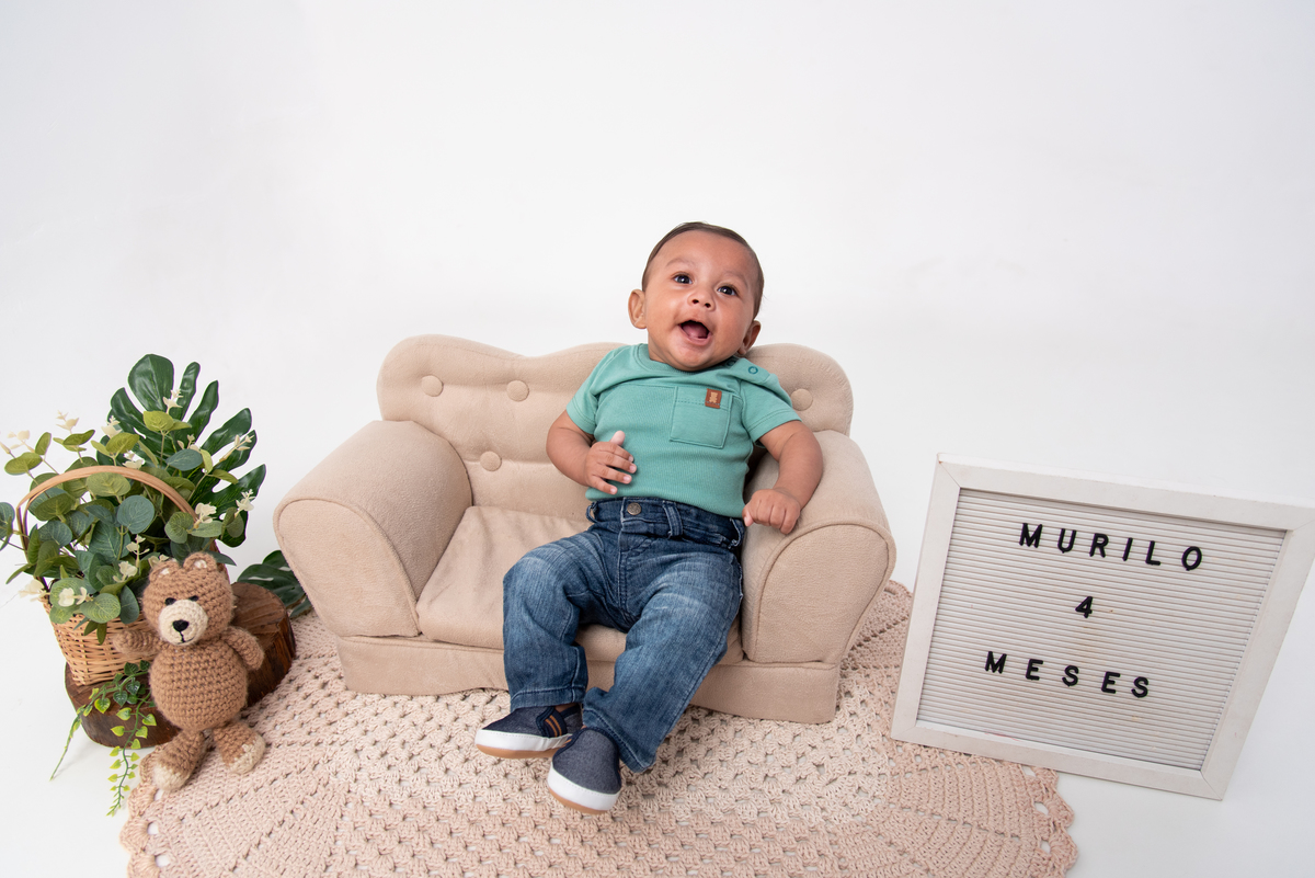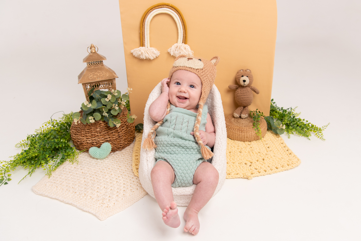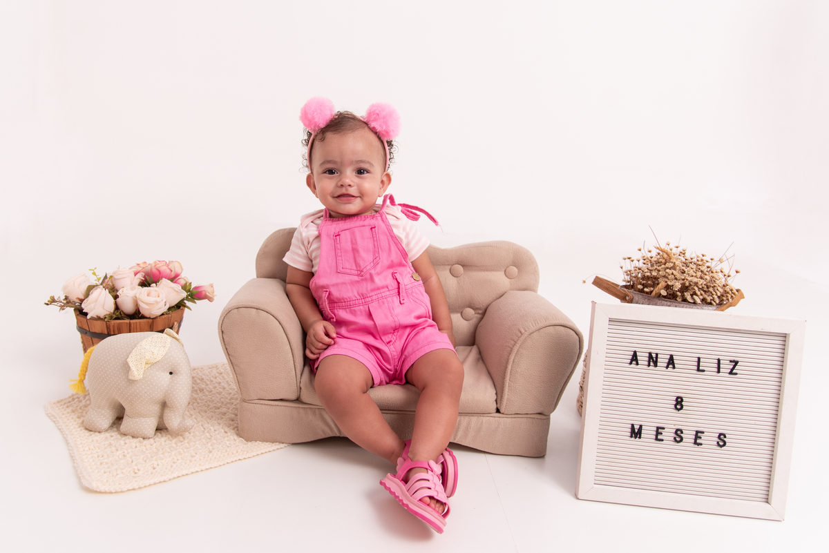 O ensaio de fotografia de acompanhamento mensal registra o crescimento do bebê mês a mês durante o primeiro ano de vida, com sessões mensais que utilizam cenários temáticos e figurinos personalizados fornecidos pela fotógrafa. As sessões são planejadas para serem rápidas e confortáveis para o bebê, resultando em fotos editadas que capturam as mudanças e o desenvolvimento ao longo dos meses. Ao final do ano, os pais recebem um conjunto harmonioso de imagens que documenta de forma especial o primeiro ano do bebê.